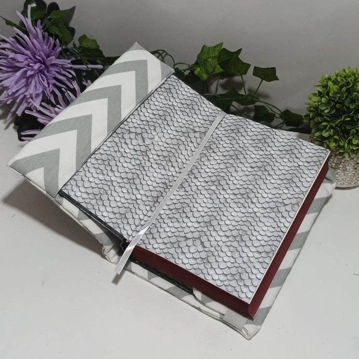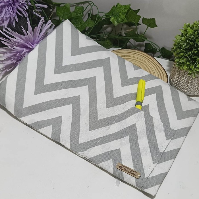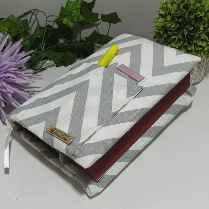 Si te gustan los diseños modernos y sobrios, esta funda literaria ajustable con diseño de chevron en blanco y gris. Confeccionada a mano en resistente loneta, no solo protege tus libros, sino que añade un toque actual y elegante a tu rutina lectora.