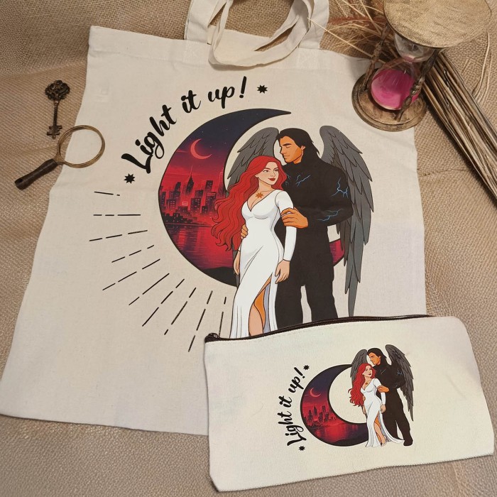 Inspirado en temas como Ciudad Medialuna, Crescent City, tote literaria, neceser lector, Light it Up, Bryce Hunt, Sarah J Maas.