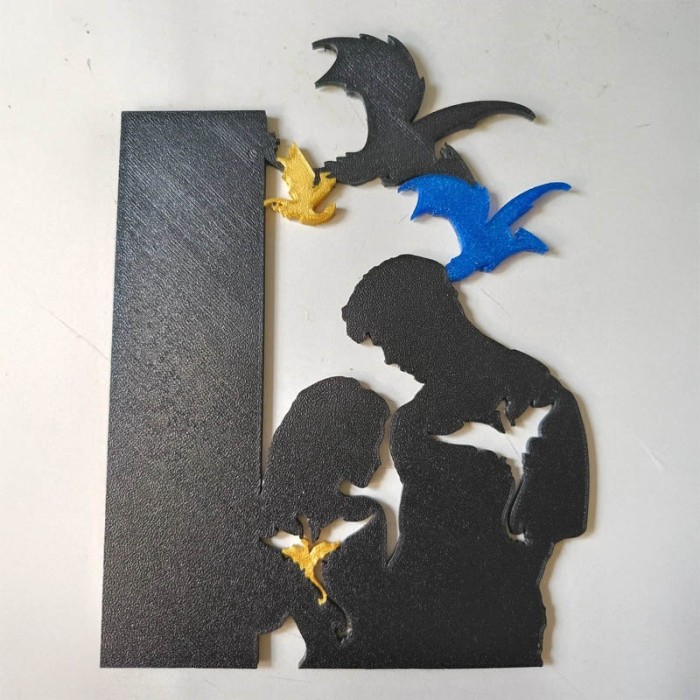 Este adorno entre libros inspirado en Alas de Sangre captura uno de los vínculos más intensos y mágicos de la saga Empíreo: Violet y Xaden, junto a los tres dragones que marcaron su historia. La silueta romántica de ambos protagonistas se une con la presencia de Tairn, Andarna y Sgaeyl, representados en vuelo sobre sus cabezas y en sus cuerpos.