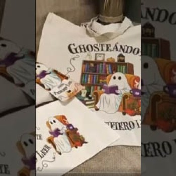 👜 Tote bag de algodón (140 g/m²) con la frase ilustrada “Ghosteándote, porque prefiero leer”.