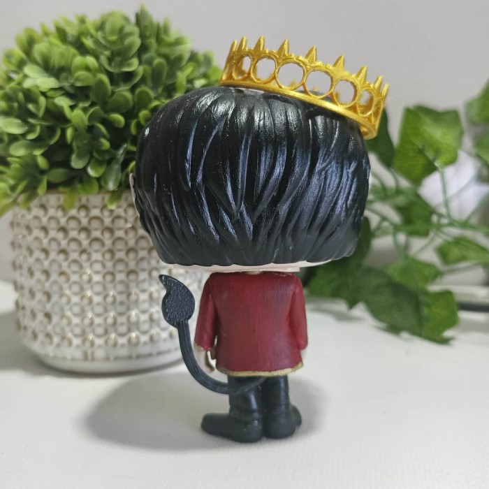 Este Funko personalizado de Cardan Greenbriar, el carismático y complejo Rey de las Hadas de la saga "El Príncipe Cruel", es el complemento perfecto para cualquier colección feérica. Este diseño exclusivo incluye una majestuosa corona dorada, impresa en 3D, que simboliza su reinado en el mundo feérico, así como una elegante cola artesanal adherida a su diseño, reflejando su naturaleza única y mágica. Vestido con su característico abrigo en tonos burdeos y detalles dorados, esta figura captura la sofisticación y el misterio de Cardan, convirtiéndola en un artículo esencial para los fans de Holly Black.